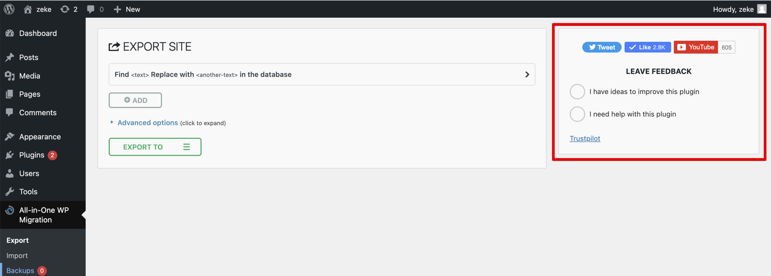 2. Export Using All-in-One WP Migration