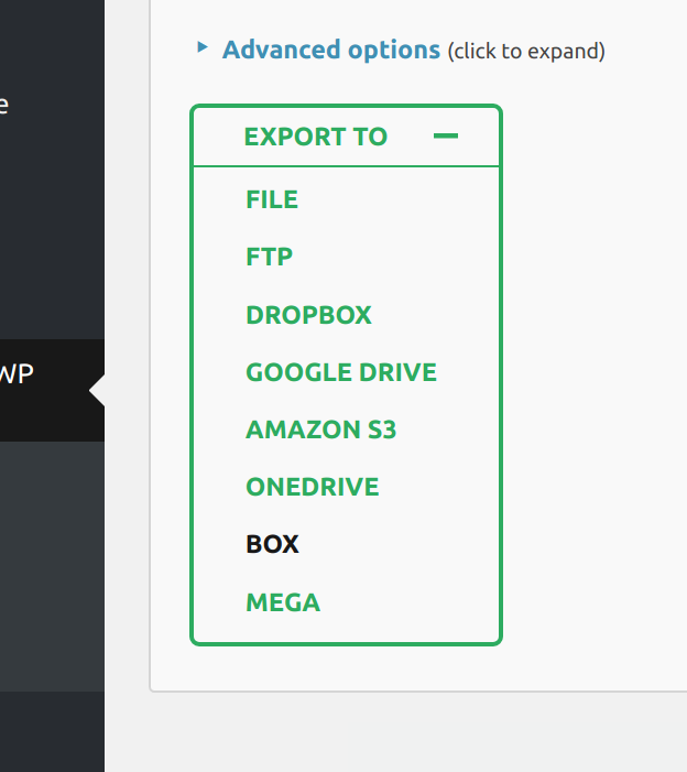 Once you successfully install and activate the extension, the Box settings will appear in the All-in-One WP Migration plugin’s dropdown: