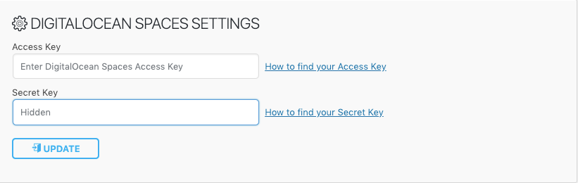 - Available DigitalOcean Spaces Extension settings