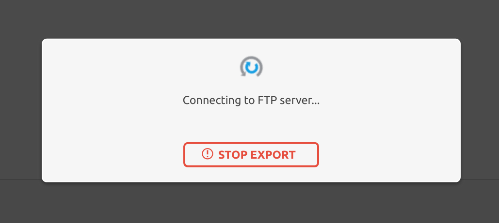 When you select one of the options, in this case FTP, the export process begins, and you will see the following steps: