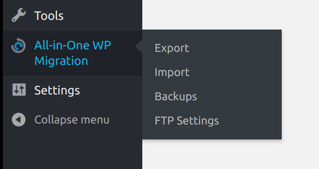 For the extension to function, you must install the All-in-One WP Migration plugin.