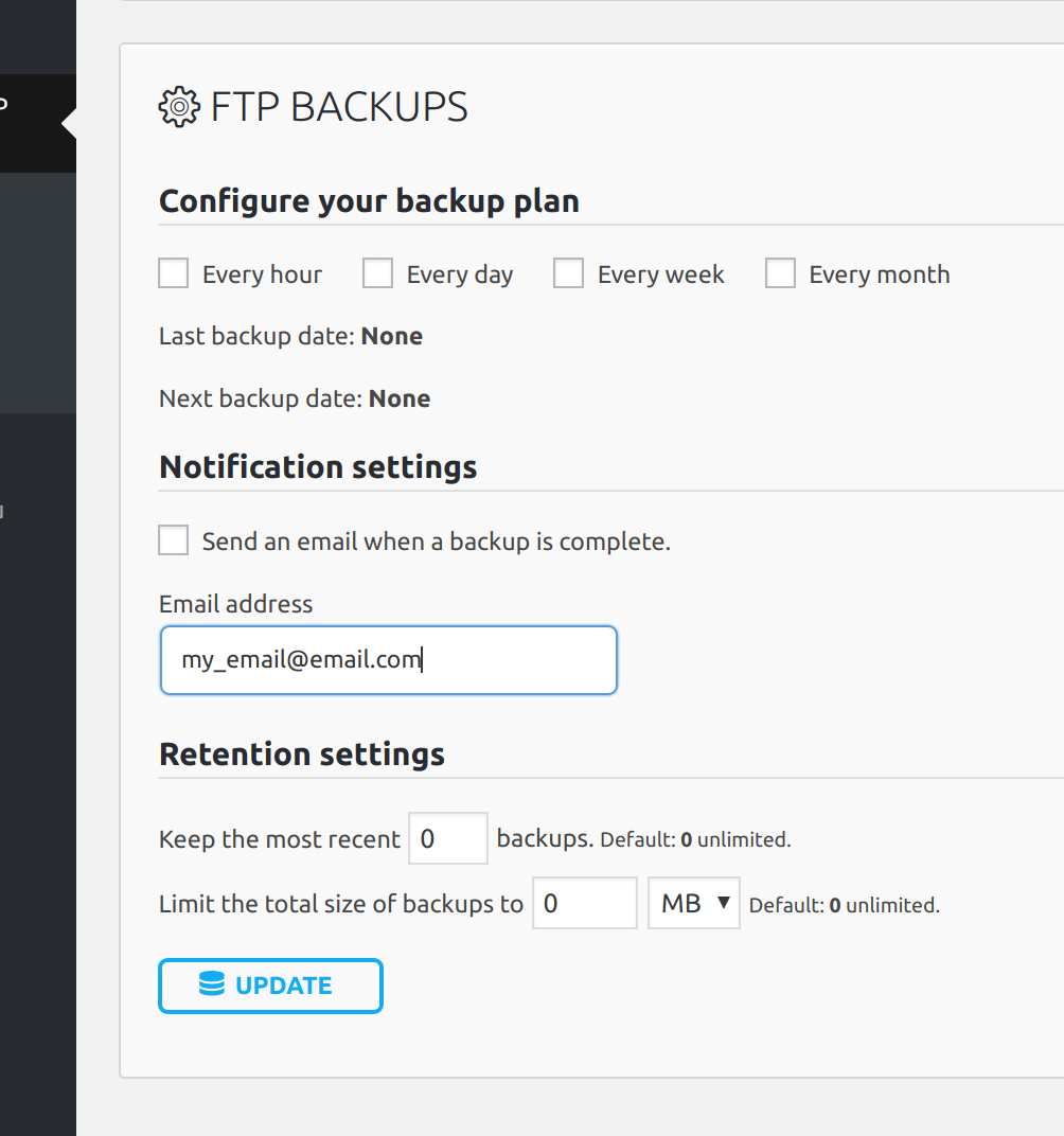 You can specify the number of recent backups that you want to keep on your FTP storage, as well as the total size of backups that you want to keep on your server, which is a very useful option if you have limited space.