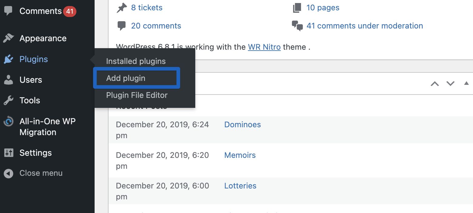 4. Navigate to the “Plugins” sub-menu.5. On the “Plugins” sub-menu, click on “Add New.”