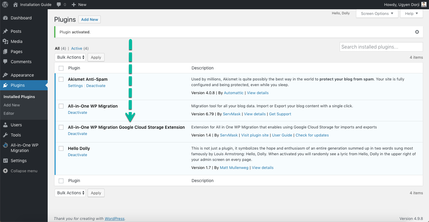 Step 2: Install All-in-One WP Migration Google Cloud Storage Extension