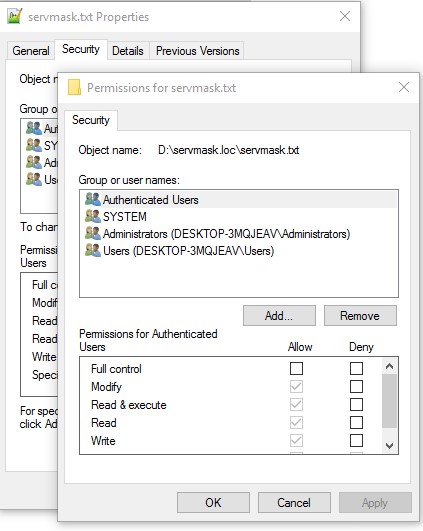 Choose the “Security” menu from the window. Click the username that needs permissions to use the file/folder – Authenticated Users, then click edit to edit their permission settings: