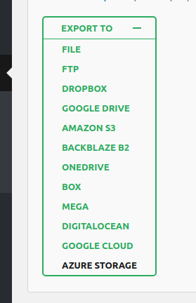 After selecting Export from the preceding options, you can choose to create an archive using Microsoft Azure Storage from the dropdown menu: