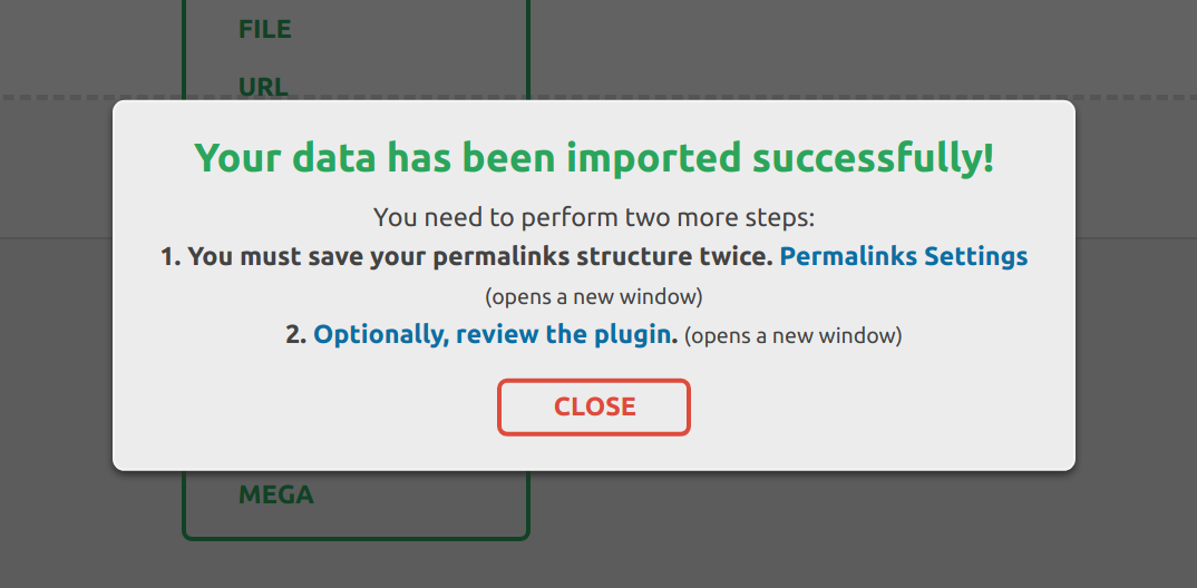 When finished, a successful import will show the following message: