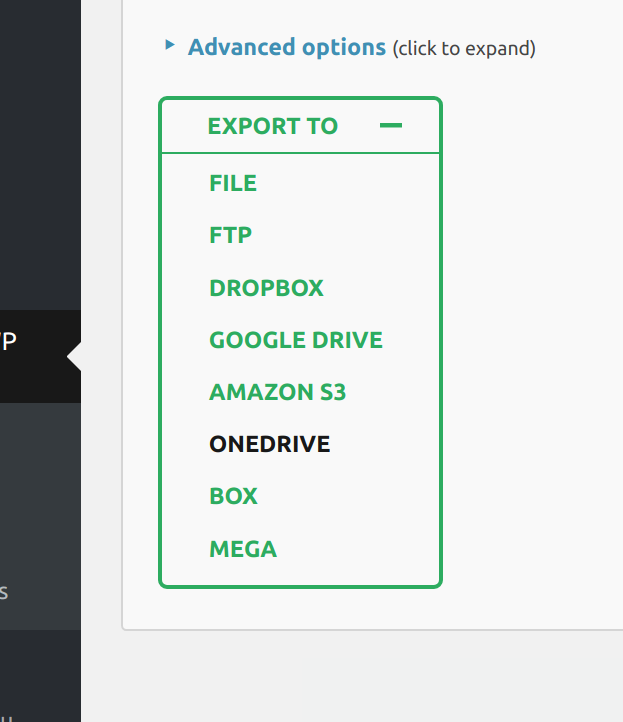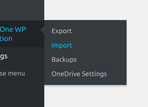 Once you successfully install and activate the extension, the OneDrive settings appear in the All-in-One WP Migration plugin’s dropdown: