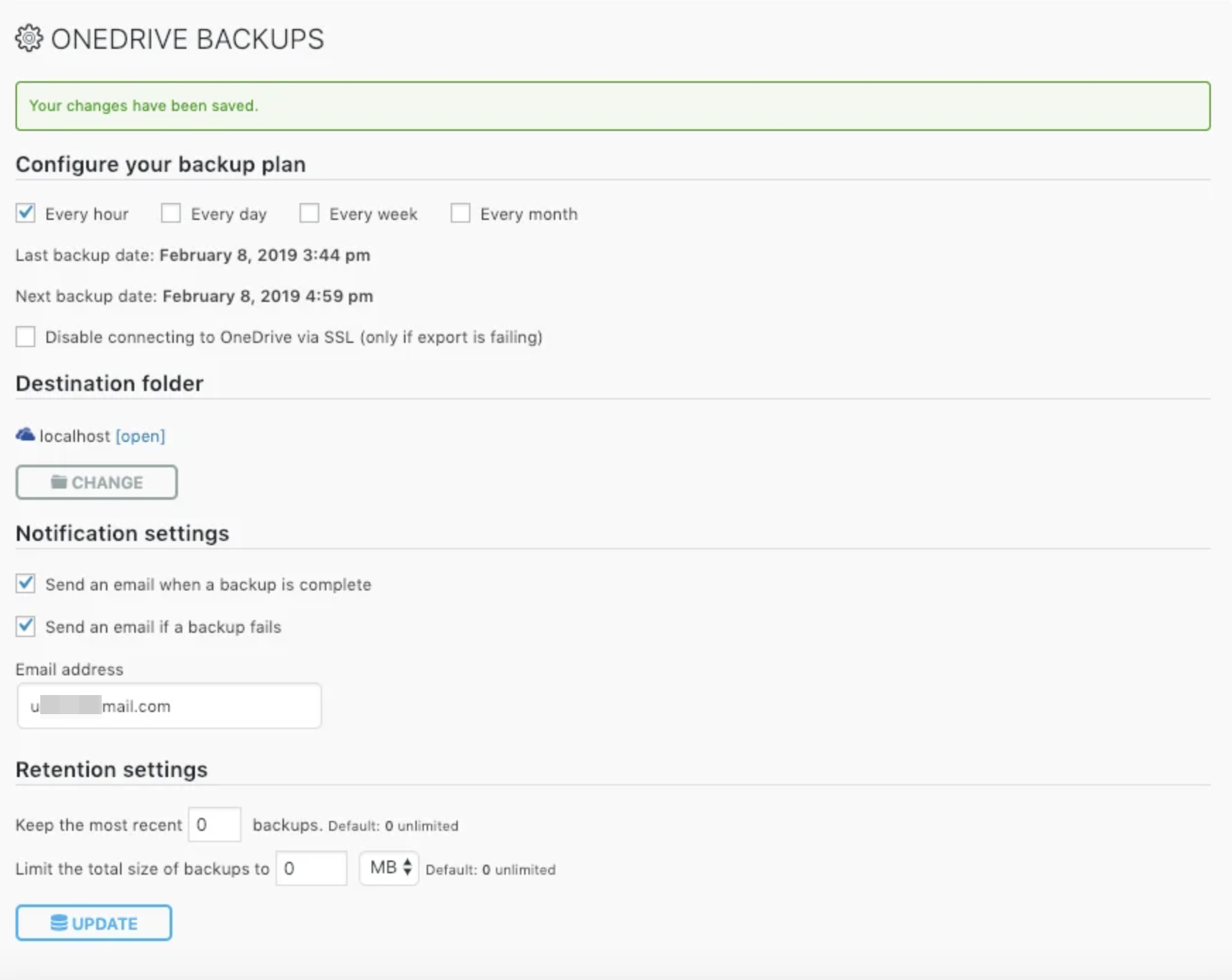 Another option is to specify how many recent backups to keep on OneDrive. In addition, you can specify the total size of backups stored in OneDrive, which is a very useful option if you only have a limited amount of storage space.