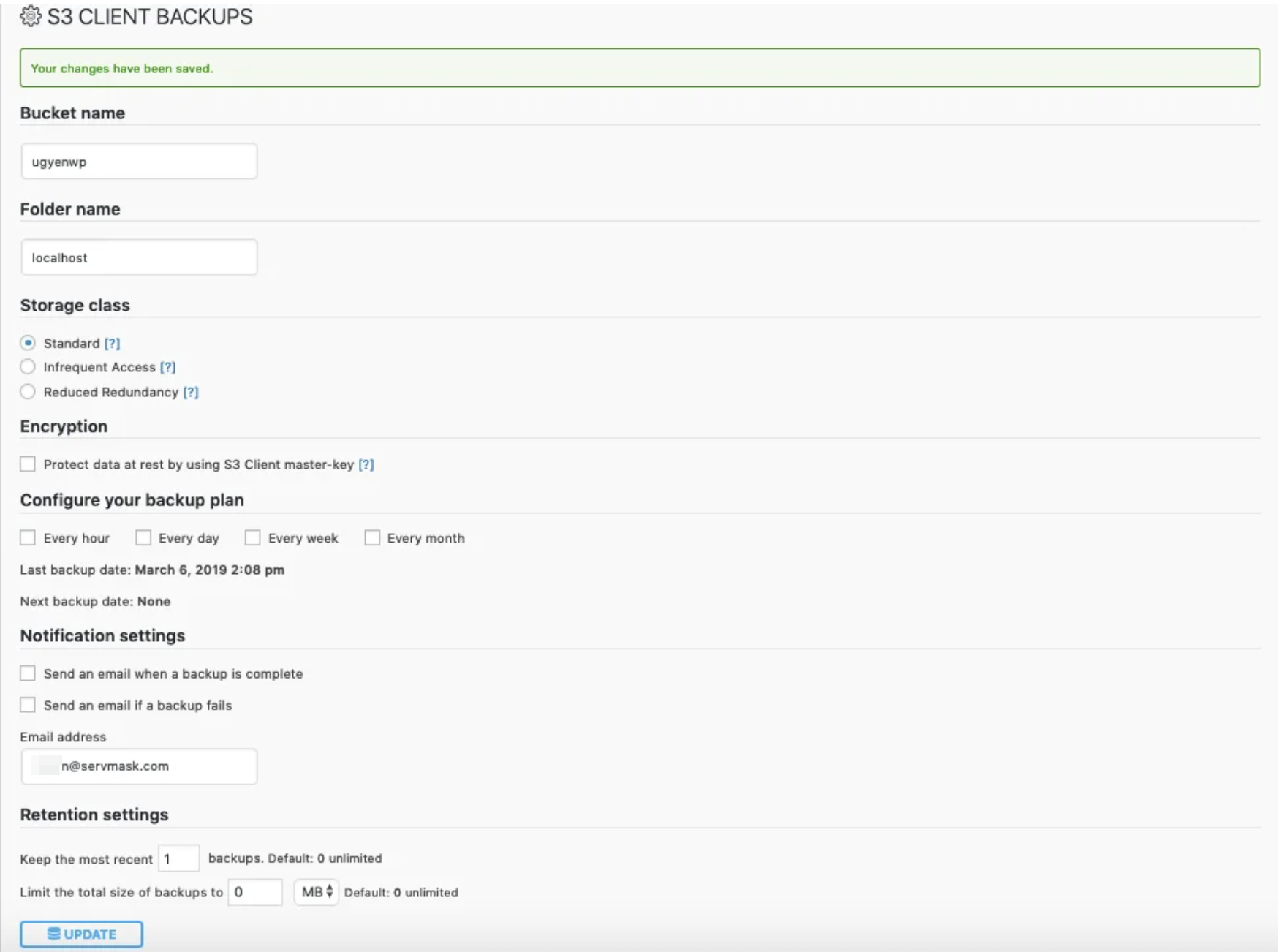 Another option is to specify the number of most recent backups to be stored on your Amazon S3 Client cloud storage. You can also specify the total size of backups to store in your Amazon S3 Client account, which is useful if you need space. After you’ve chosen your options, click the “Update” button to save them.