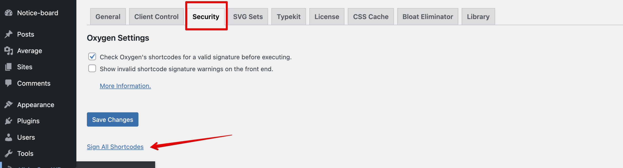 - Navigate to the Security tab and select “Sign All Shortcodes”