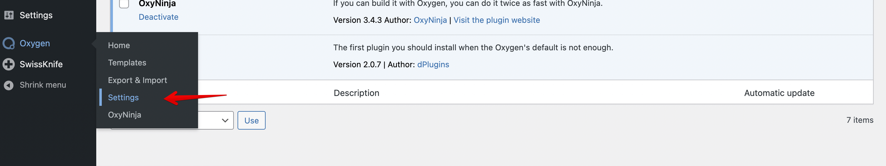 - Locate Oxygen from the admin menu options in your WordPress dashboard. From there, select the “Settings” option