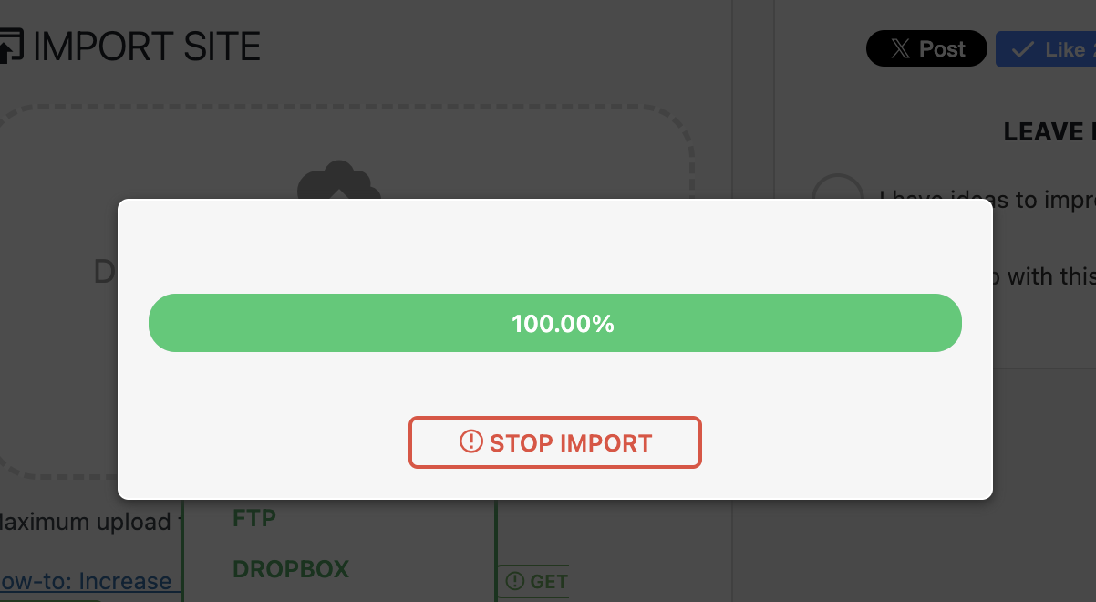 If you are importing a backup and the backup upload process stops at 100%, there are some reasons why this could happen. This article will list these reasons and provide recommendations on how to resolve them.