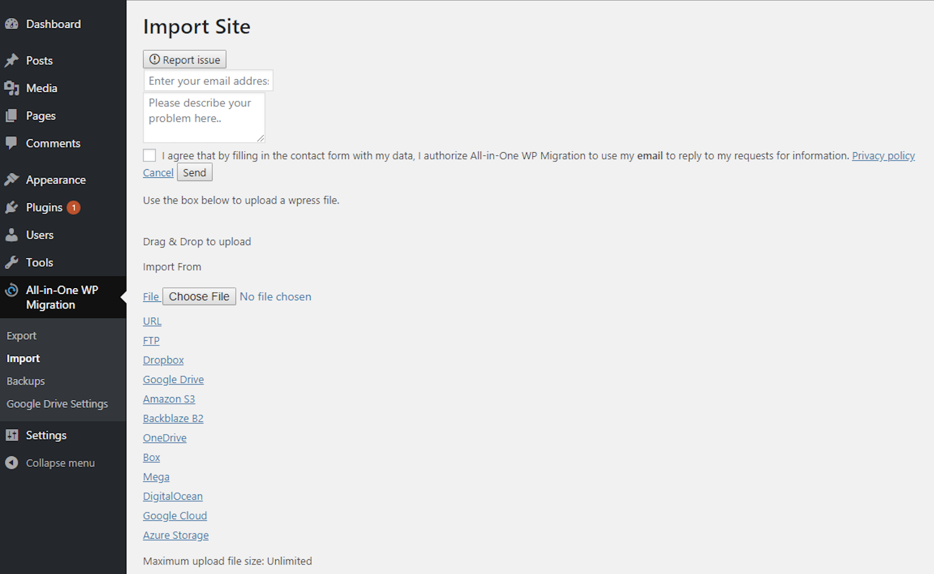 You may notice an import page that does not appear to work. This occurs because the Site URL and Home URL do not configure properly.